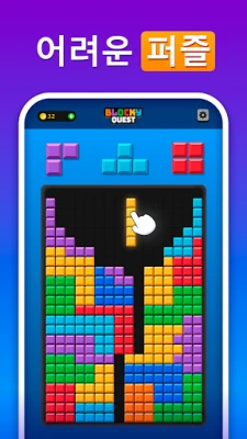 오랜 시간 사랑받아 온 고전 블록 퍼즐의 매력을 블록 퀘스트가 새로운 방식으로 재해석하여 선보입니다. 익숙한 블록의 형태와 배치의 즐거움은 그대로 유지하면서도, 기존의 게임과는 차별화된 독특한 플레이 방식을 선보이며 신선한 퍼즐 경험을 선사합니다. 블록 퀘스트는 세월을 초월한 고전 게임의 향수에 혁신적인 요소들을 더해, 단순한 시간 보내기를 넘어선 깊이 있는 전략과 몰입감을 선사합니다. 당신의 두뇌를 자극하고 공간 지각 능력을 시험할 준비가 되셨나요?