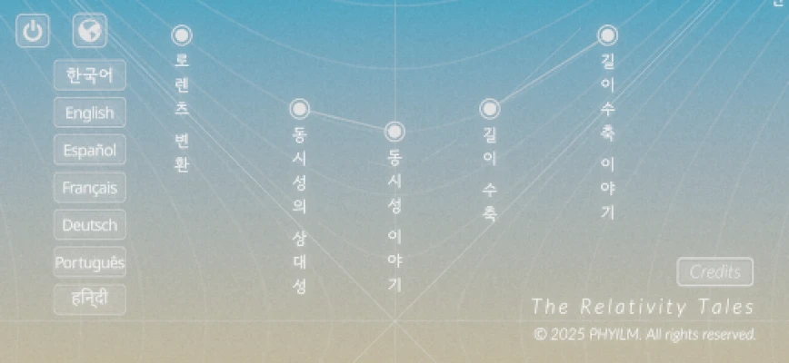물리학의 난해한 영역, 특수상대성이론은 여전히 많은 이들에게 복잡한 수식과 추상적인 개념으로 다가옵니다. 하지만 '더 렐러티비티 테일즈'는 이 장벽을 허물고, 당신이 직접 시공간의 신비를 손끝으로 탐험하도록 초대합니다. 빛의 속도로 질주할 때 세상은 어떻게 왜곡되는지, 시간의 흐름은 과연 절대적인지 등 아인슈타인의 상상 속 질문들을 직접 체험하며 생생한 통찰력을 얻게 될 것입니다. '더 렐러티비티 테일즈'가 선사하는 직관적 상호작용으로, 더 이상 외우는 지식이 아닌 물리 세계의 본질을 깨달으세요.